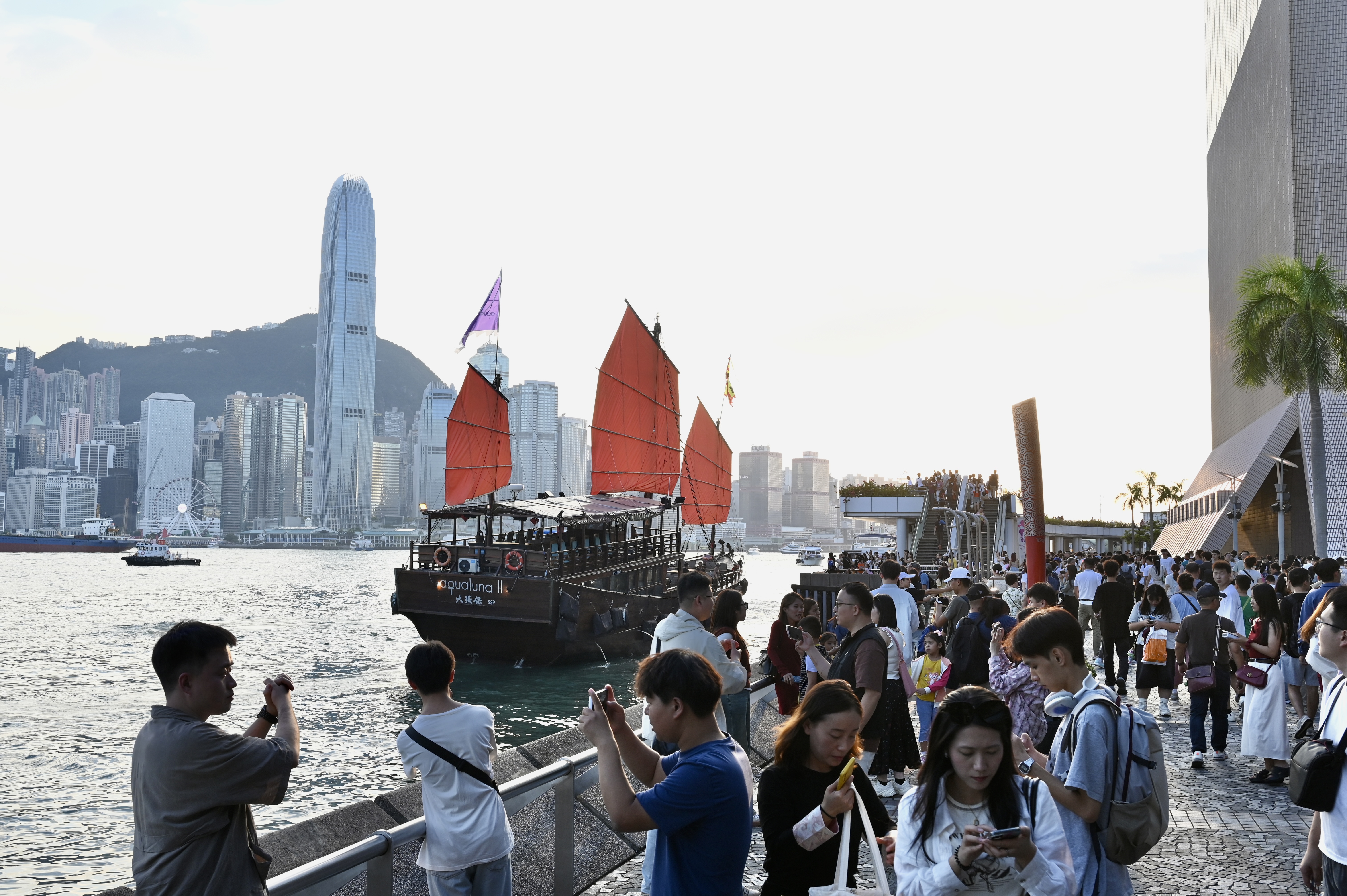 ▲访港旅客在尖沙咀星光大道一带游玩。 中新社