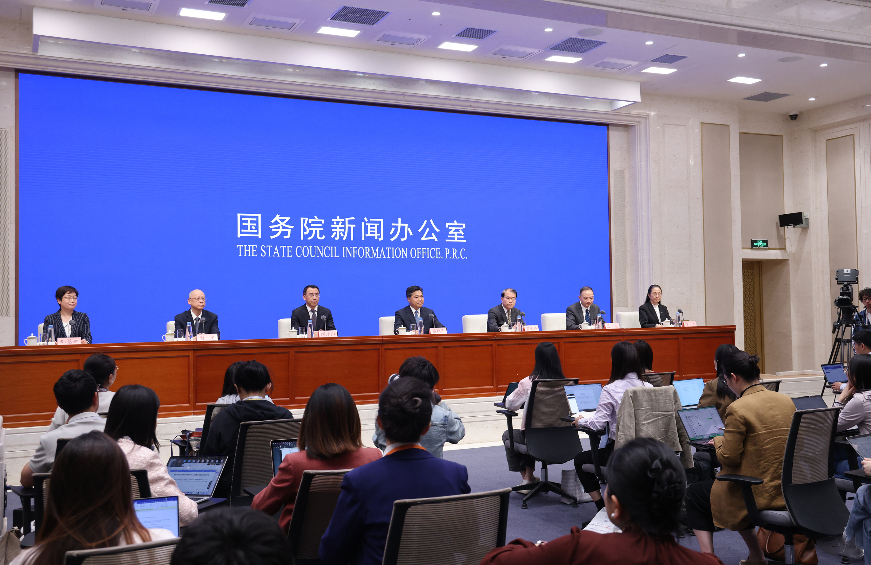 ▲4月27日,中国国务院新闻办公室在北京举行新闻发布会,中国商务部副部长盛秋平、财政部税政司司长贾荣鄂、文化和旅游部产业发展司司长缪沐阳、海关总署口岸监管司司长夏俊、税务总局货物和劳务税司司长谢文、中国民航局运输司司长徐青介绍优化离境退税政策扩大入境消费有关情况并答记者问。中新社