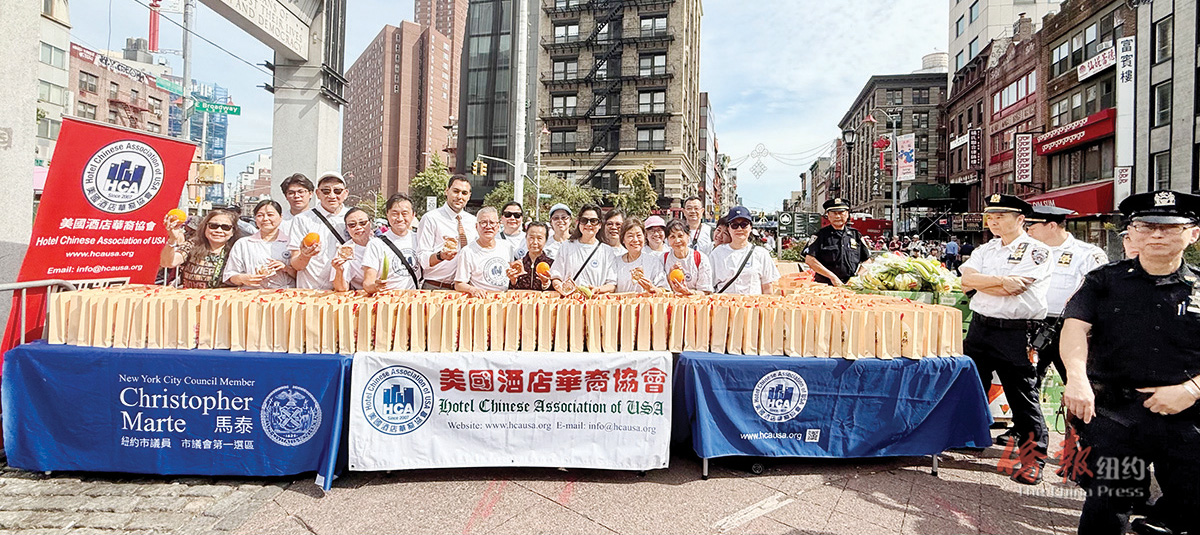 【侨报纽约讯】 中秋节到来之际,市议员马泰(Chris Marte)与美国酒店华裔协会、美国酒店地产总商会、黄氏宗亲会以及威威干洗店联手举办第十一届家庭同乐日活动。在华埠林则徐广场向社区耆老免费发放月饼和生果,吸引近千民众出席。