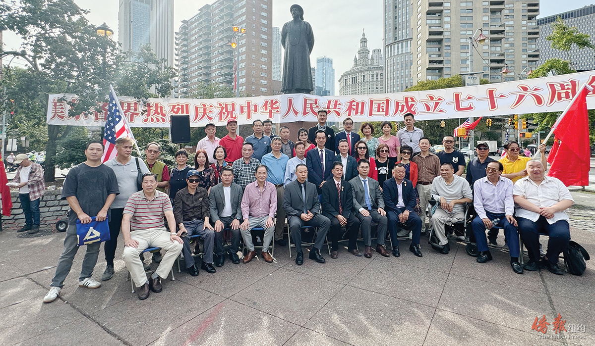 美东侨界祝贺中华人民共和国成立76周年。( 韩清源摄)
