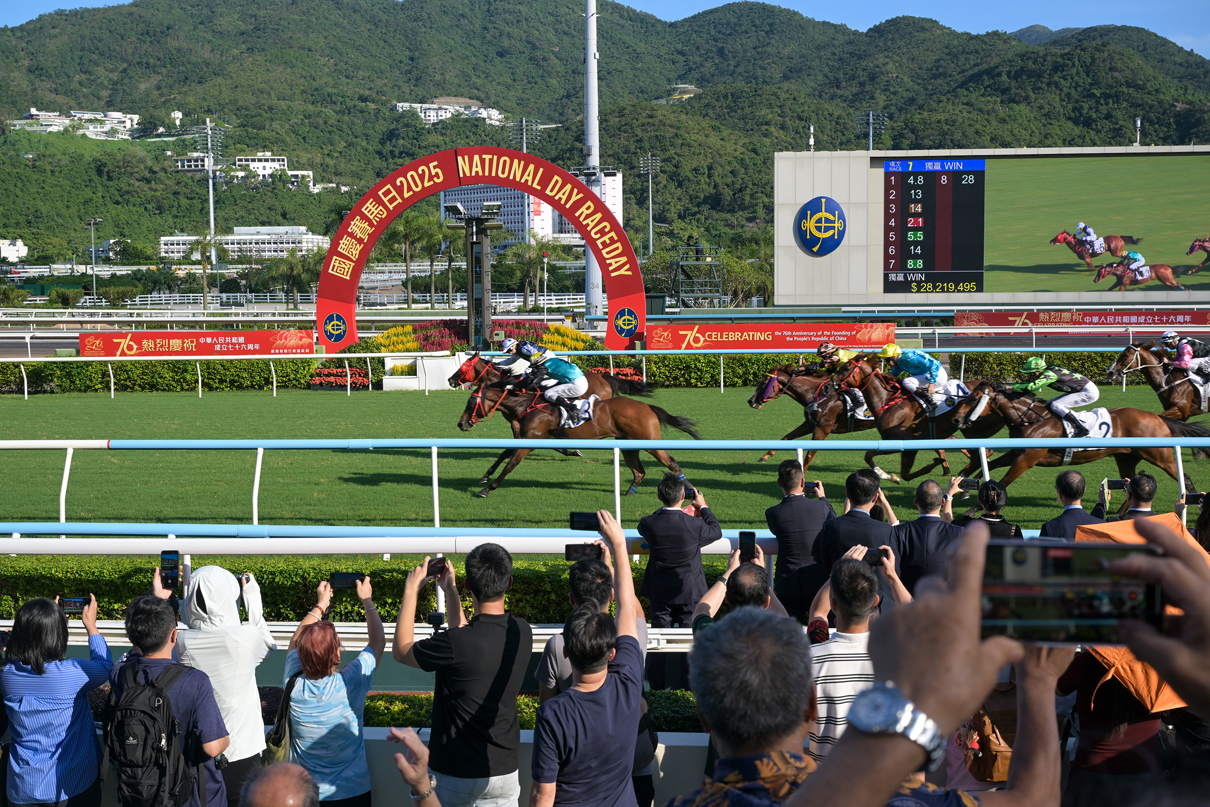 为与市民及游客共庆国庆,沙田马场公众席当日免费开放。场内除紧张刺激的赛事外,还设有多个主题打卡点及互动体验区。近期投入使用的新设施“连荟”和“天马驿”内人流如织,为市民及游客,尤其是年轻入场者带来了沉浸式数字化赛马及娱乐体验,极大提升了赛事吸引力。