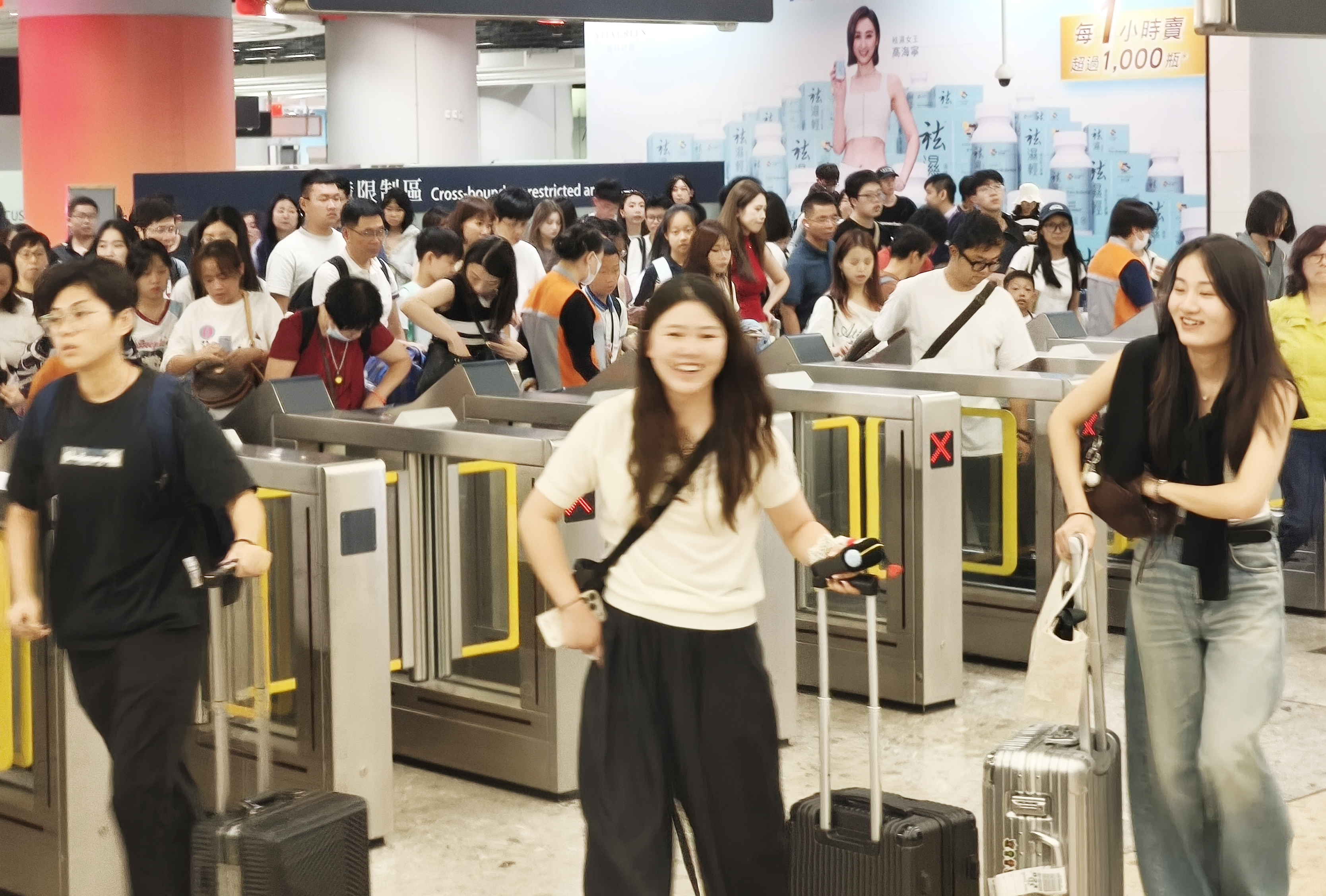 ▲10月1日,香港西九高铁站大批旅客抵达。 香港中通社