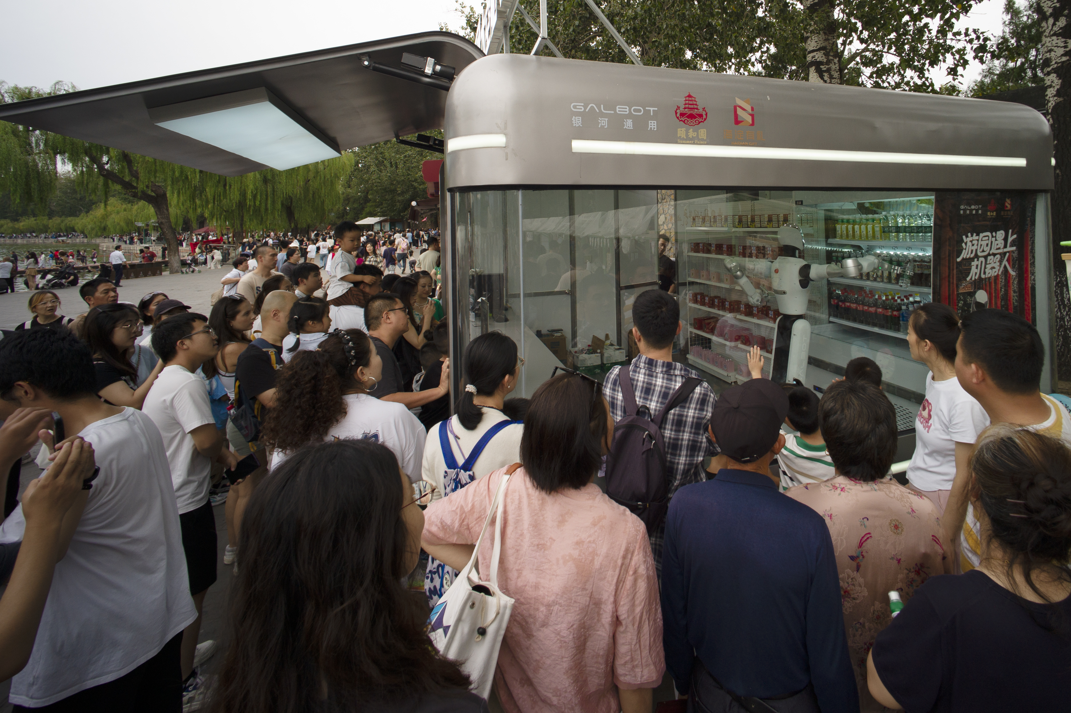▲10月1日,北京颐和园的一家机器人零售店吸引众多游客。据北京市园林绿化局统计数据显示,“十一”国庆中秋假期首日当天,全市公园共接待游客128.37万人次。 中新社