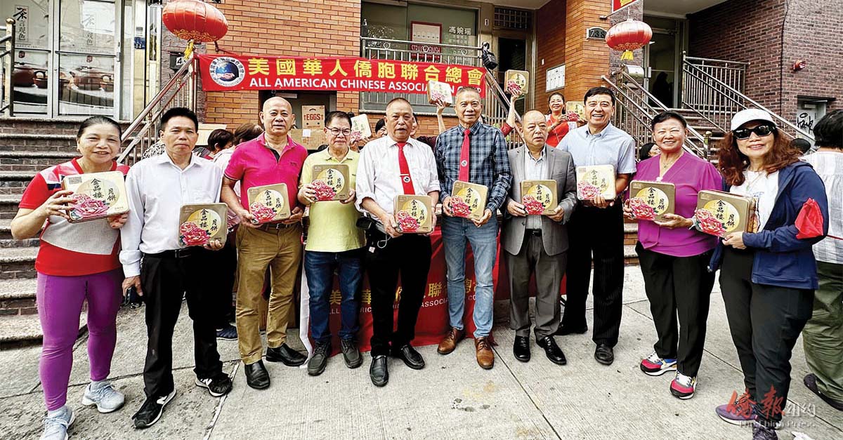 美国华人侨胞联合总会9月30日在位于布碌仑八大道58街会所前向民众派送月饼,以助华人欢度中秋佳节。