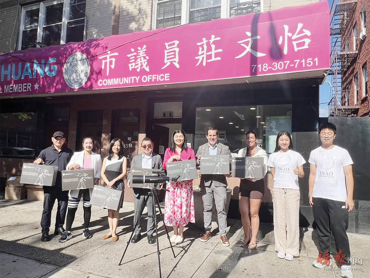 【侨报记者崔国萁10月2日纽约报道】 市议员庄文怡携手国际学生天文组织(International Student Astronomy Organization,简称ISAO)于近日宣布,向布碌仑区三所学校捐赠10台望远镜,每所学校分别获得三台,以帮助学生们在课堂之外探索天文和科学知识。