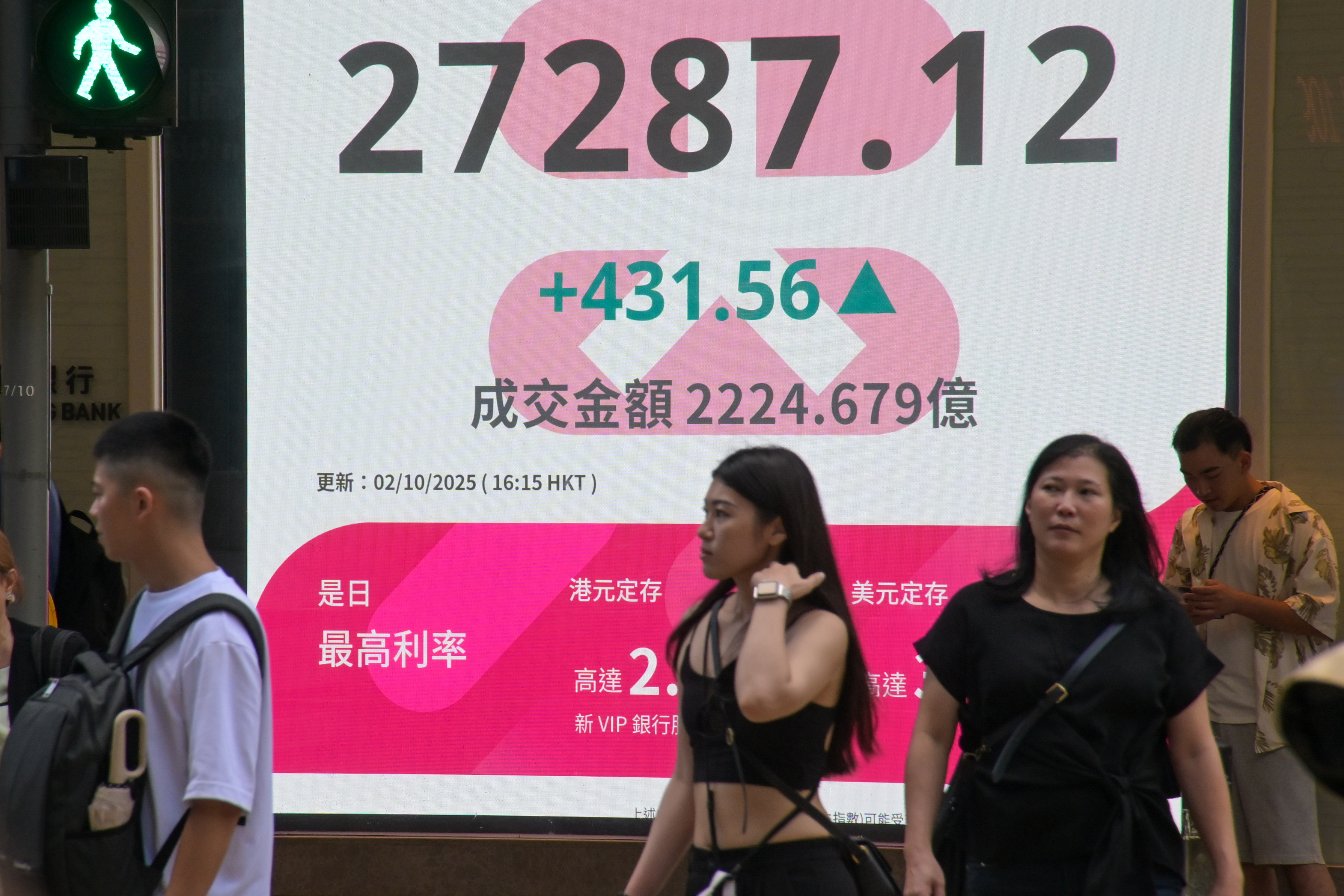 【侨报讯】中新社报道,10月2日,港股迎来10月首个交易日,三大指数高开后持续走高。香港恒生指数突破27000点大关,创下近4年多新高。