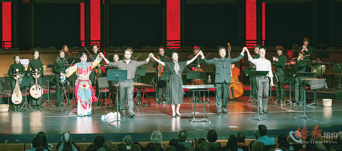 【侨报纽约讯】 巴德美中音乐研习院携手中国中央音乐学院共同主办的第八届纽约中国当代音乐节(China Now Music Festival)5日在林肯爵士乐中心玫瑰剧场圆满落幕,现场观众起立致敬、掌声雷动。艺术总监蔡金冬带领巴德中西乐团(Bard East/West Ensemble)携手多位特邀艺术家共同呈现了一场融合中西方音乐、歌剧、京剧、现代舞和装置材料等艺术元素的跨领域、多感官的视听盛宴,与今年音乐节的主题 “乐动” (Music in Motion)呼应,探索当代中国音乐的不断推进与焕新、艺术的跨界交互、创作的与时俱进。