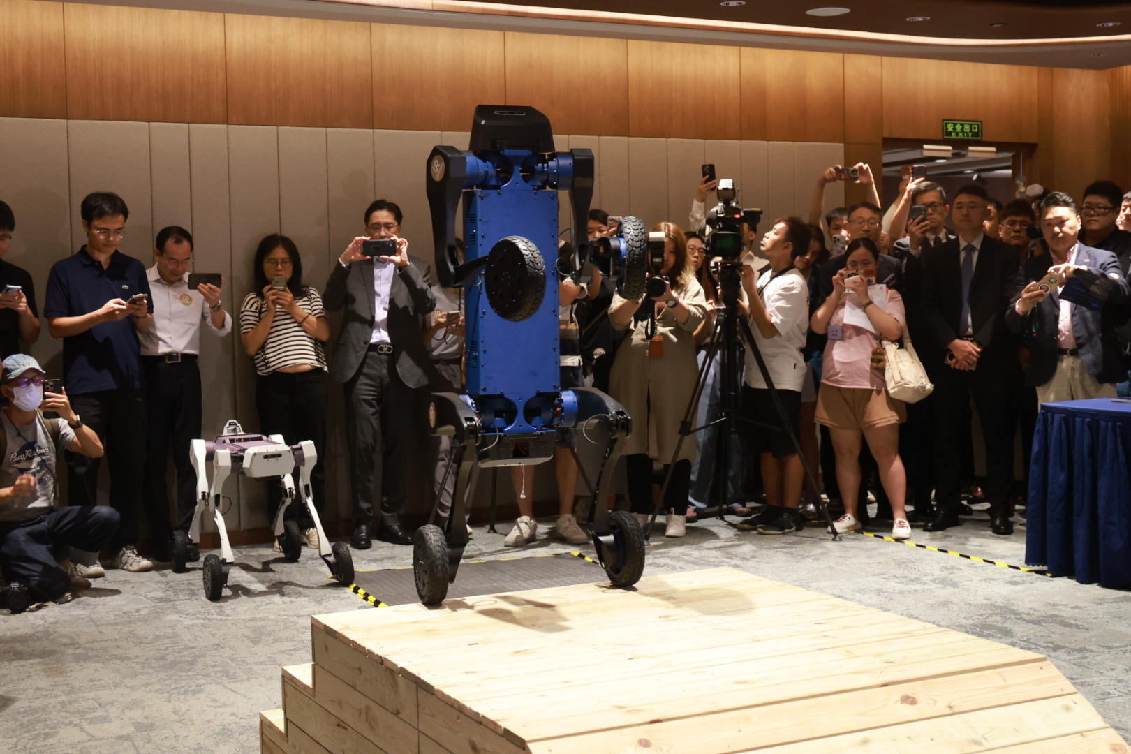 ▲10月13日,香港中文大学在香港科学园举行记者会。推出香港首个尖端人工智能四足机械人及人形双臂操作平台,由香港中文大学进驻InnoHK创新香港研发平台的香港物流机械人研究中心研发。据悉,该平台不但在感知、智能操控与系统集成方面取得突破,而且具备灵活的移动能力,能够在复杂的动态环境中高效执行协作任务,标志着四足机械人、机械人操作技术及具身人工智能迈向新里程碑。香港中通社