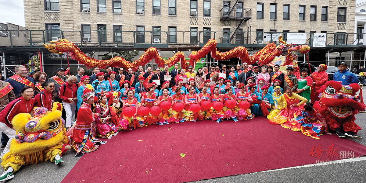 【侨报记者韩清湲10月13日纽约报道】 美国亚裔文化交流总会联合美东华人华侨及40多个侨团和商家12日于法拉盛缅街(Main St)与三福大道(SanfordSt)庆祝中华人民共和国76周年华诞,以及第五届中国日同乐庆中秋文化巡游节暨第八届美国国际龙狮文化艺术节,近千人参与活动。