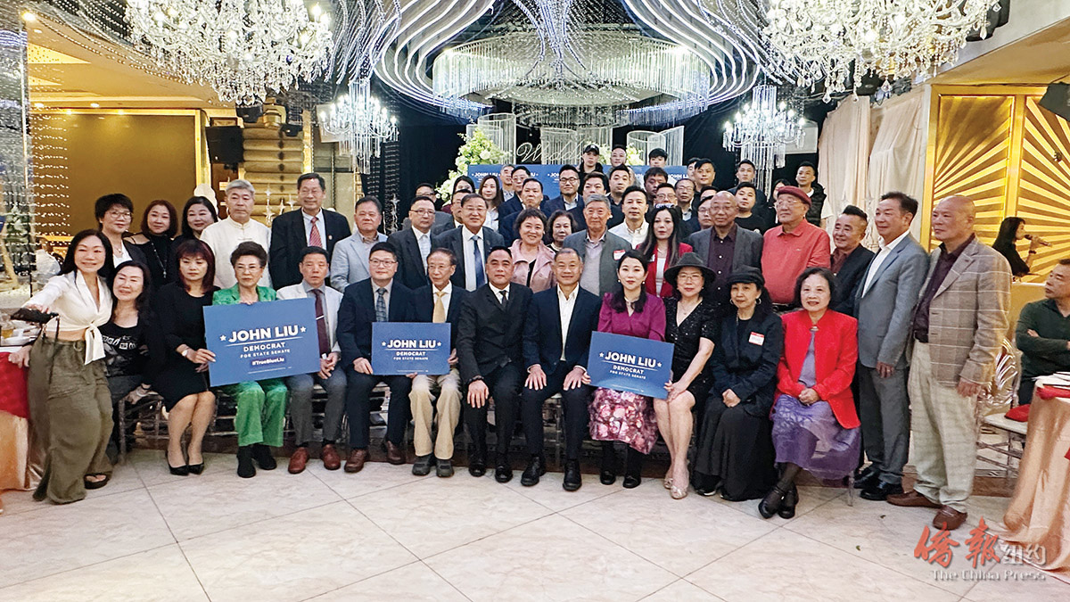 【侨报记者韩清湲10月13日纽约报道】 州参议员刘醇逸(John Liu)日前于法拉盛法拉盛君豪大酒楼举办中秋节筹款晚宴,逾百名侨领与社区代表出席。