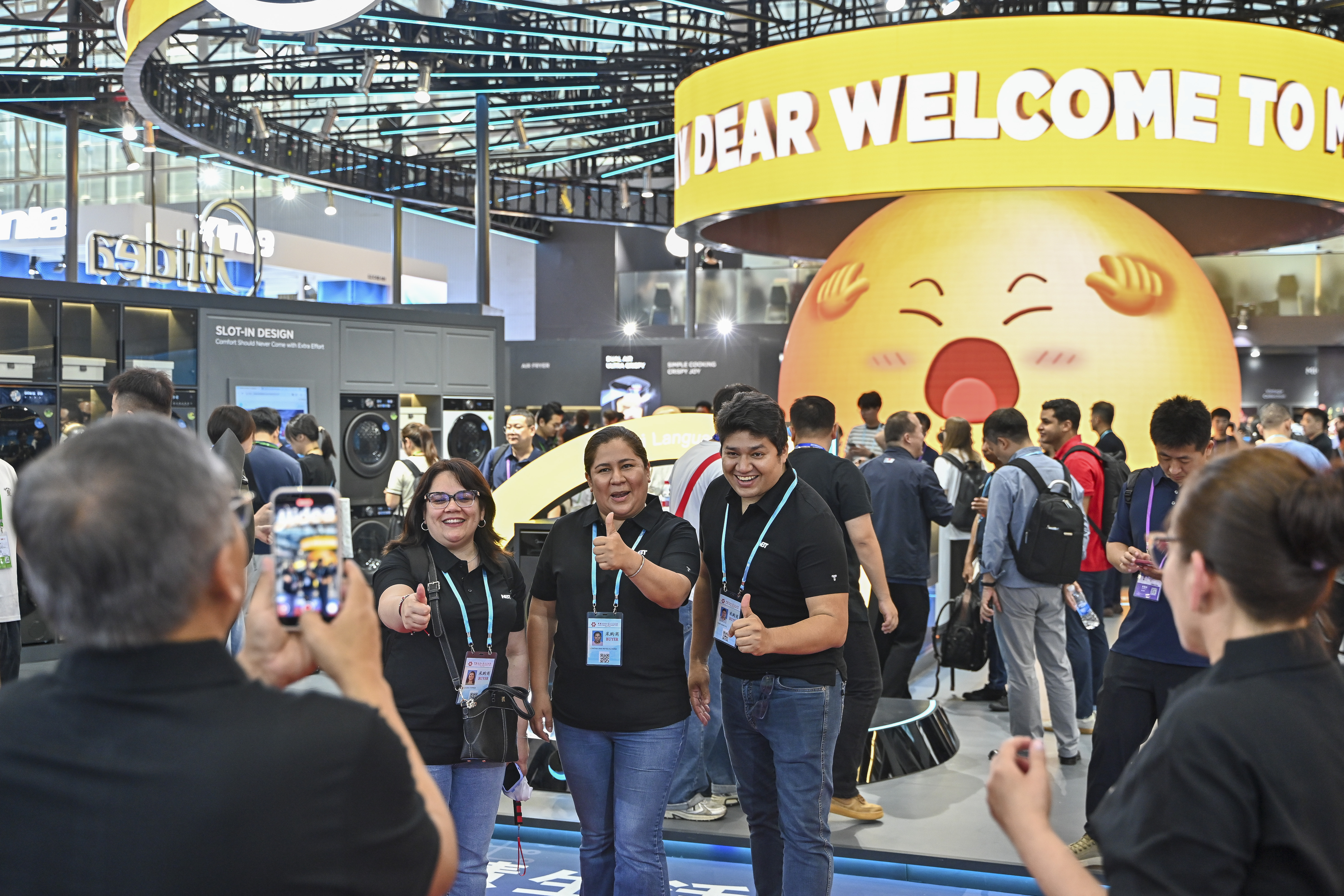 ▲10月15,广交会采购商在家用电器展区留影。当日,第138届中国进出口商品交易会(广交会)在广东省广州市开幕,“智慧生活”板块中的中国家电企业产品格外吸睛,来自世界各地的采购商步履不停,穿梭于各个展位,询价下单订货。 中新社