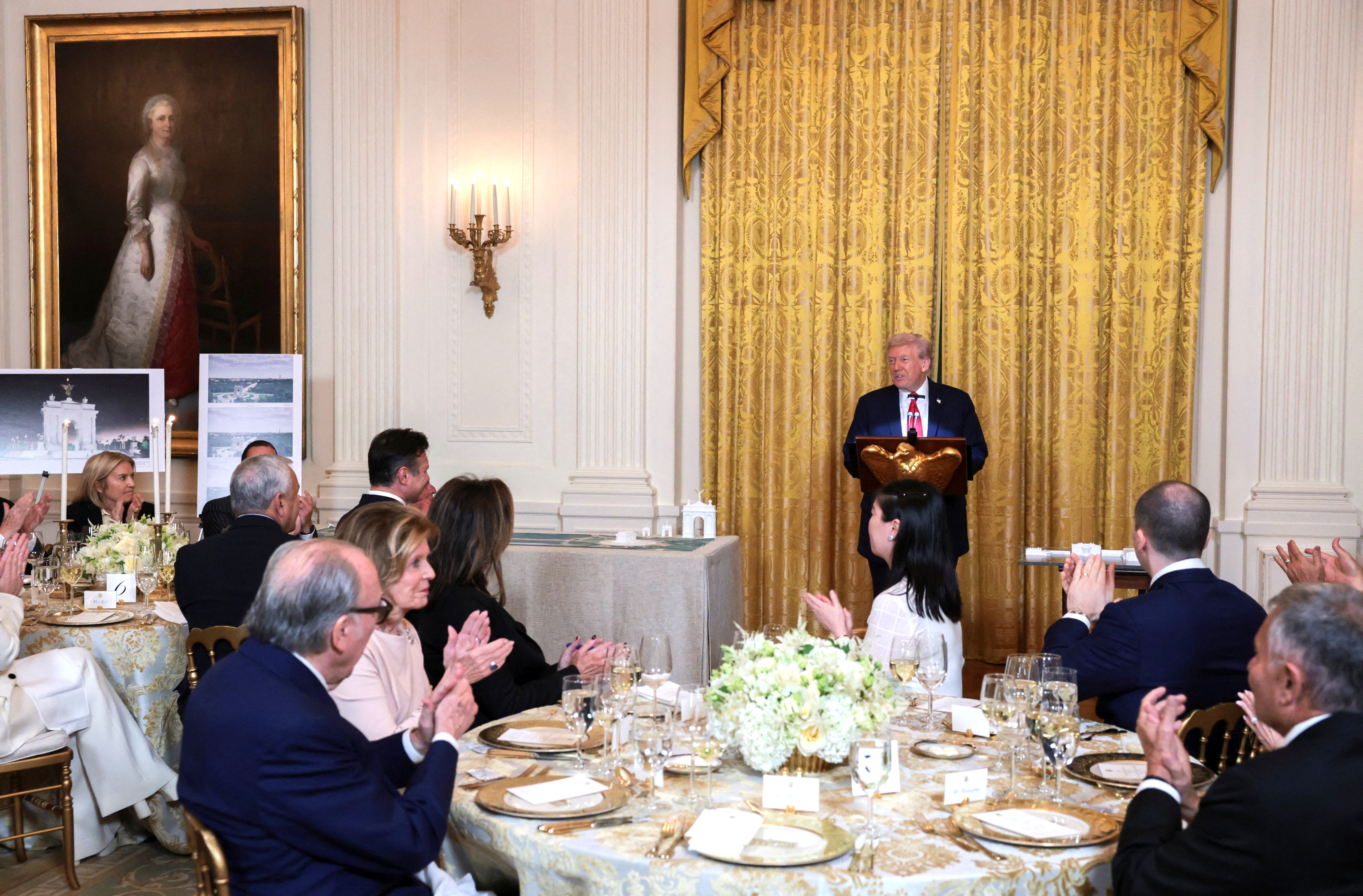【侨报讯】10月15日,总统特朗普在白宫举办盛大晚宴,招待约130名主要捐赠者、商业领袖与共和党盟友,感谢并呼吁他们为新建白宫舞厅的巨额捐款。计划中的白宫宴会厅预算高达2.5亿美元,是特朗普第二任期内对白宫最重要的改建工程。