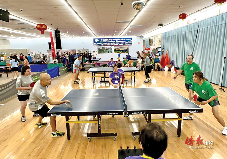 美东台山杯第七届乒乓球邀请赛于19日上午8时开始,在位于布碌仑宾臣墟区86街的华达康乐中心乒乓球俱乐部开赛,16支队伍纷纷竞技,展开你争我夺的激烈比赛,现场热气腾腾。