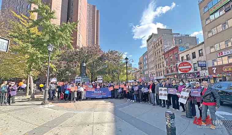 周日上午,华埠多位民主党代表于孔子大厦的孔子像前举行集会,支持独立候选人暨前州长葛谟(Andrew Cuomo)。纽约华裔美国退伍军人会主席黄建中、纽约华人总公所总顾问暨同济社区互助会副会长伍灼生与联合亚美联盟(UA3)执行总监乐启光等社区代表出席。