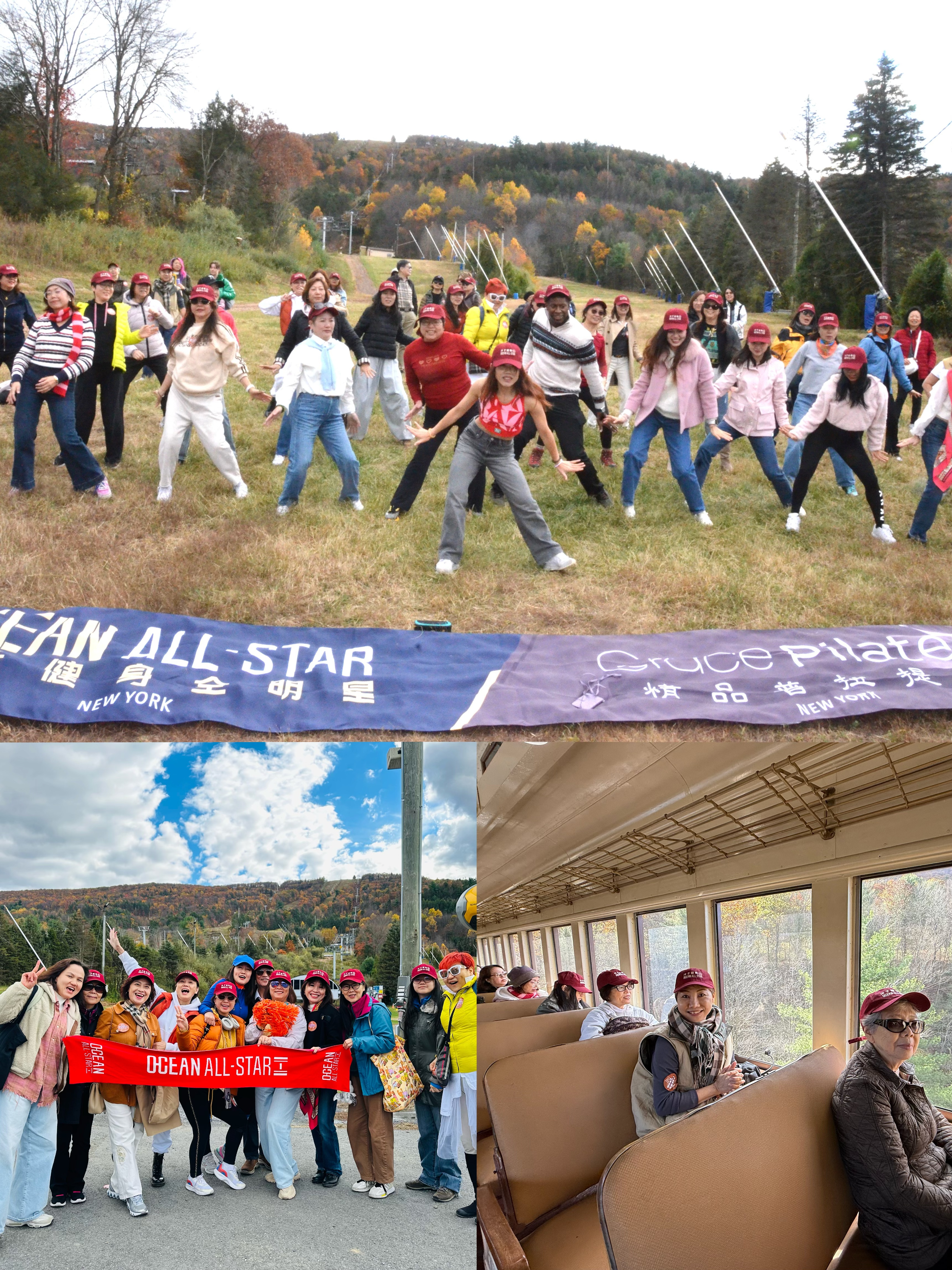本次活动行程丰富多彩:参与者乘坐仿古火车穿越纽约瑞士小镇赏枫,于蓝山(Blue Mountain)乘坐空中缆车俯瞰秋色;在山脚下,由洋子健身首席全明星尊巴舞教练 Lamy 带领全员热舞尊巴,Grace Pilates客座明星教练国际超模王潇指导模特走秀,展现健康与自信之美。