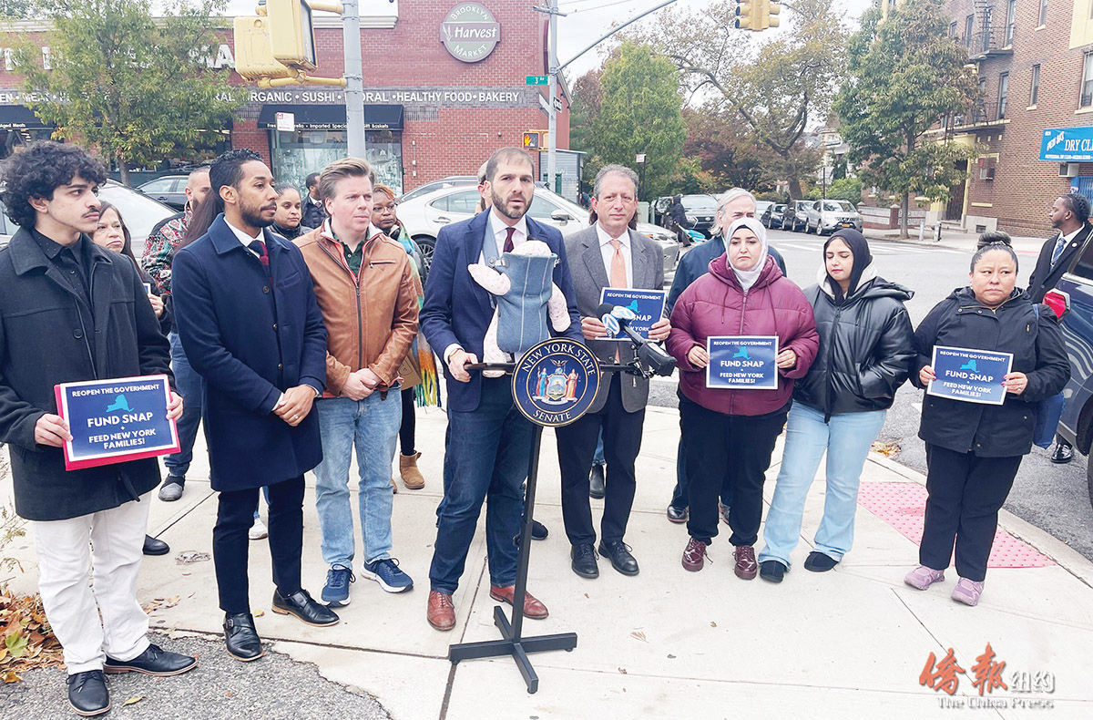 【侨报记者高诗云11月2日纽约报道】纽约市府推出综合举措应对粮食券断更。布碌仑区长等众多民选官员集会呼吁重启联邦政府、恢复粮食券发放。