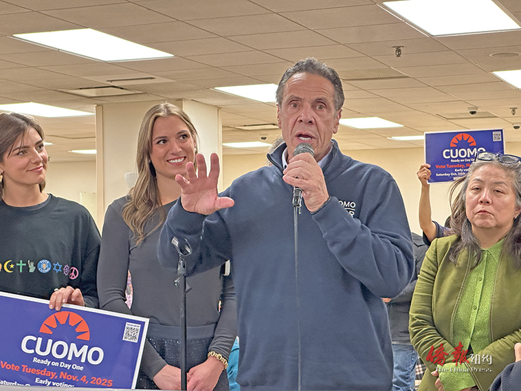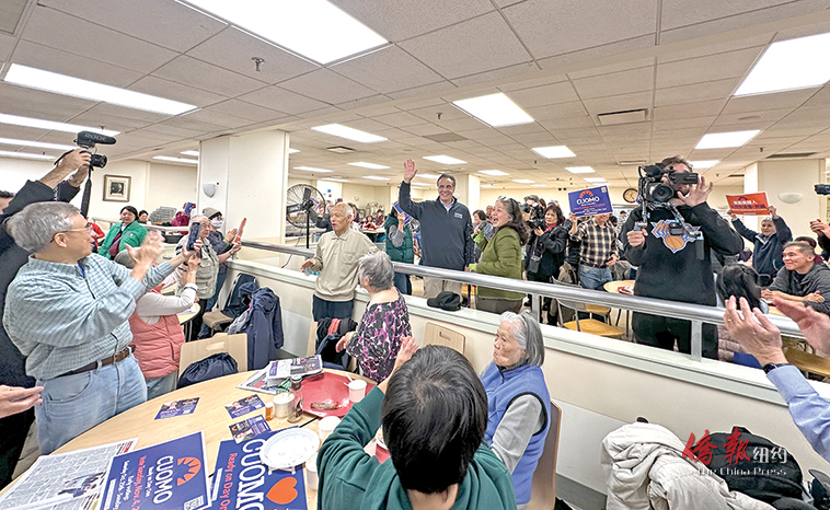 【侨报记者韩清湲11月3日纽约报道】选举在即,前州长葛谟(Andrew Cuomo)3日在其两个女儿的陪同下拜访临近华埠的华埠耆英会老人中心,阐述政纲政见。会上葛谟强调特朗普并未为其背书,称若当选将抵制特朗普以保护纽约市。