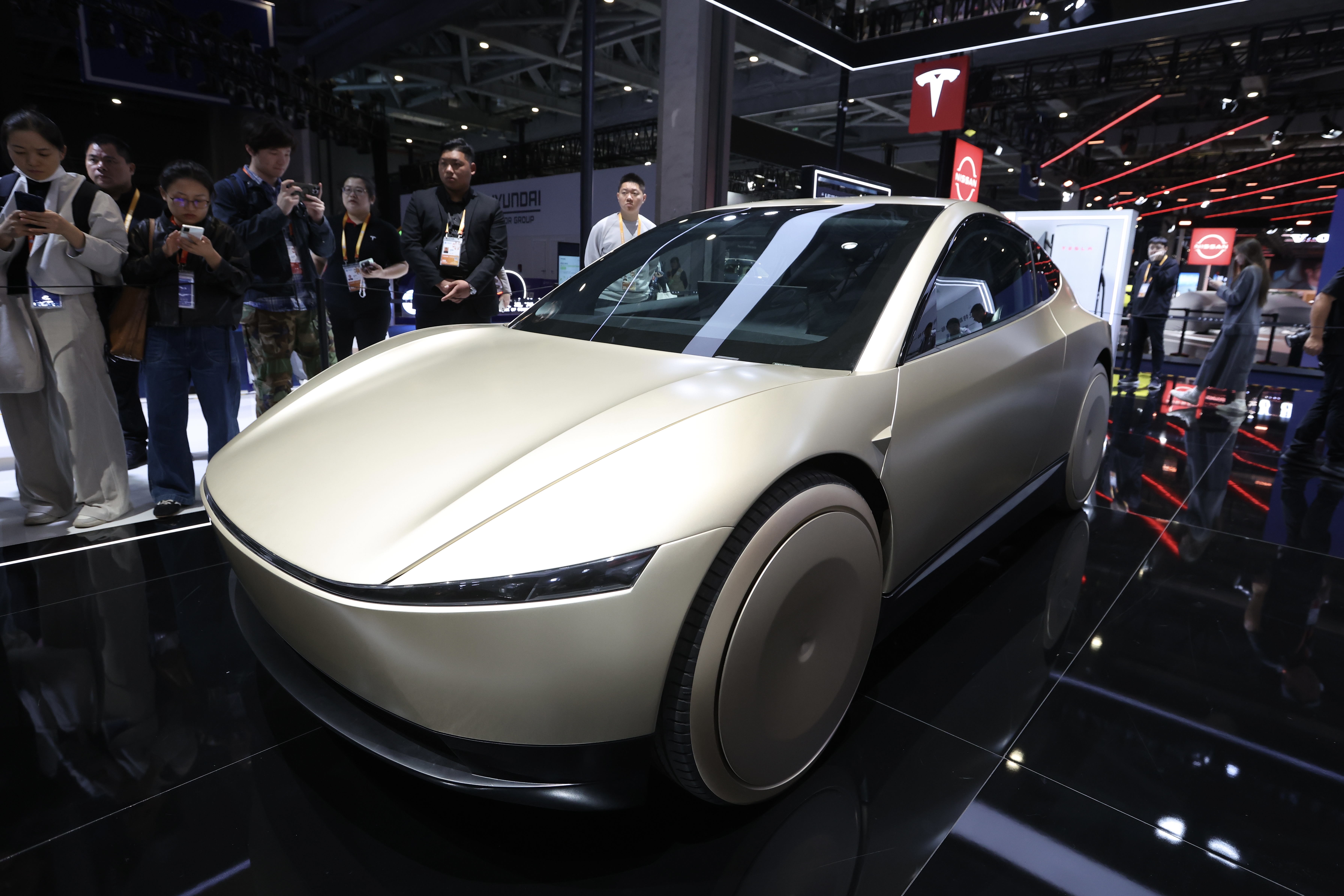 在汽车及智慧出行展区的特斯拉展台,明星展品Tesla Cybercab迎来亚太地区首秀。它以金色流线型车身、没有方向盘和脚踏板的独特设计,吸引众多目光。展台工作人员透露,预计这款车型于明年二季度量产。
