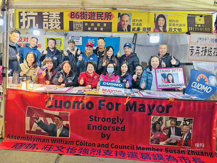 在宾臣墟86街游民所选址,抗议民众依然坚守,同时还有支持者日夜为葛谟和庄文怡热情助选。一向坚定反对2134 Coyle St游民所的斯利瓦,当晚也赶到20大道75街,亲自同共和党议员陈学理、郑永佳和支持者们一起拜票。