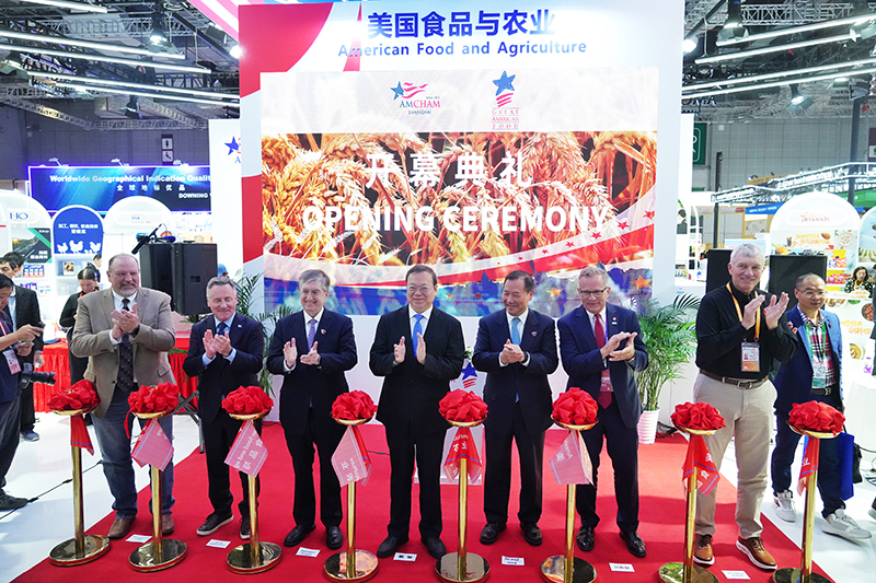 ▲11月6日,上海,美国食品与农业馆在第八届进博会上举行开馆仪式。 中新社