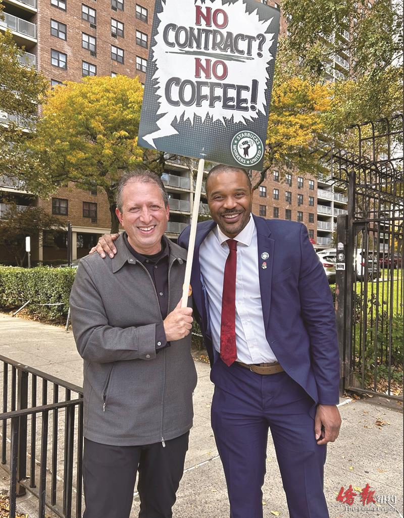 ▲蓝德近日在街头声援星巴克员工。 (取自蓝德X)