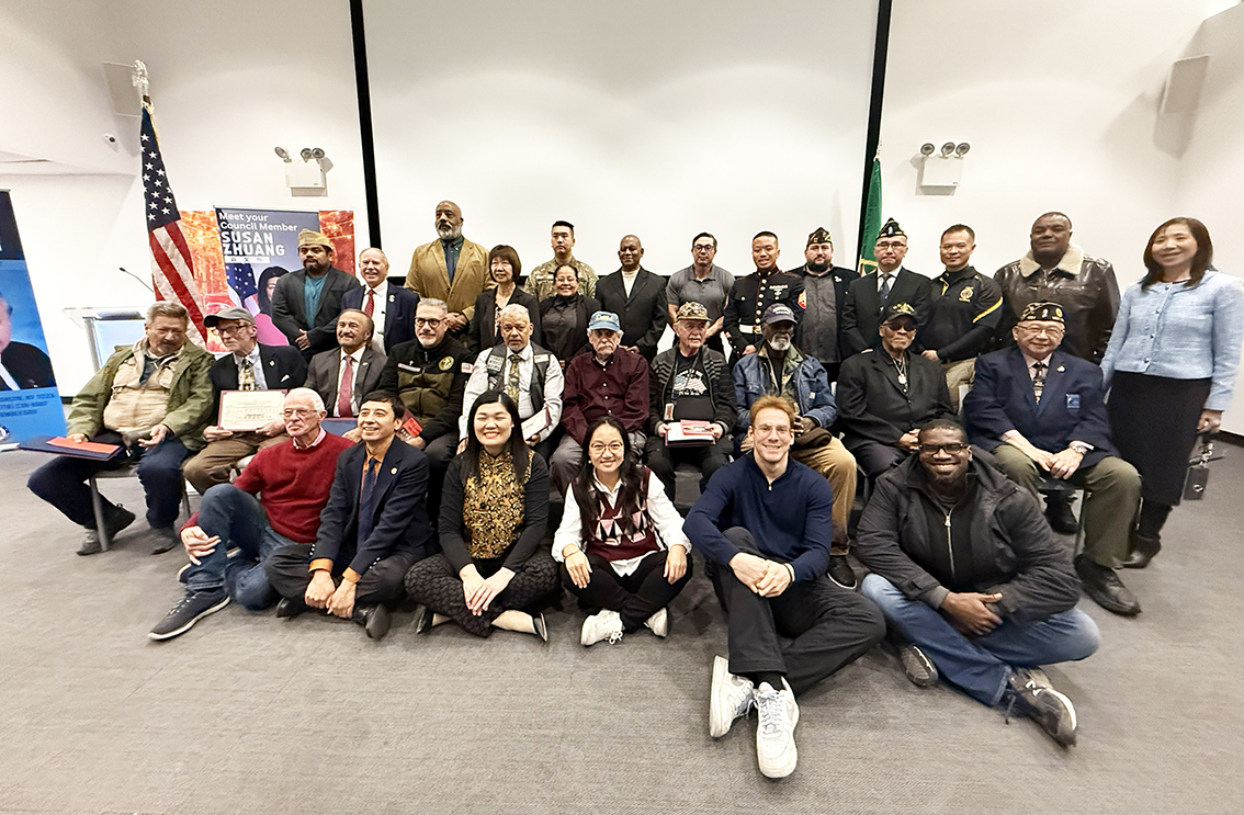 此次庆典在宾臣墟区十八大道8711号的意美中心(Il Centro)举行,凝聚了来自不同族裔、不同信仰,但团结在爱国热情下的社区成员。寇顿和庄文怡议员表彰了45位退伍军人,他们来自多个军种,包括陆军、海军、空军、海军陆战队与海岸警卫队。