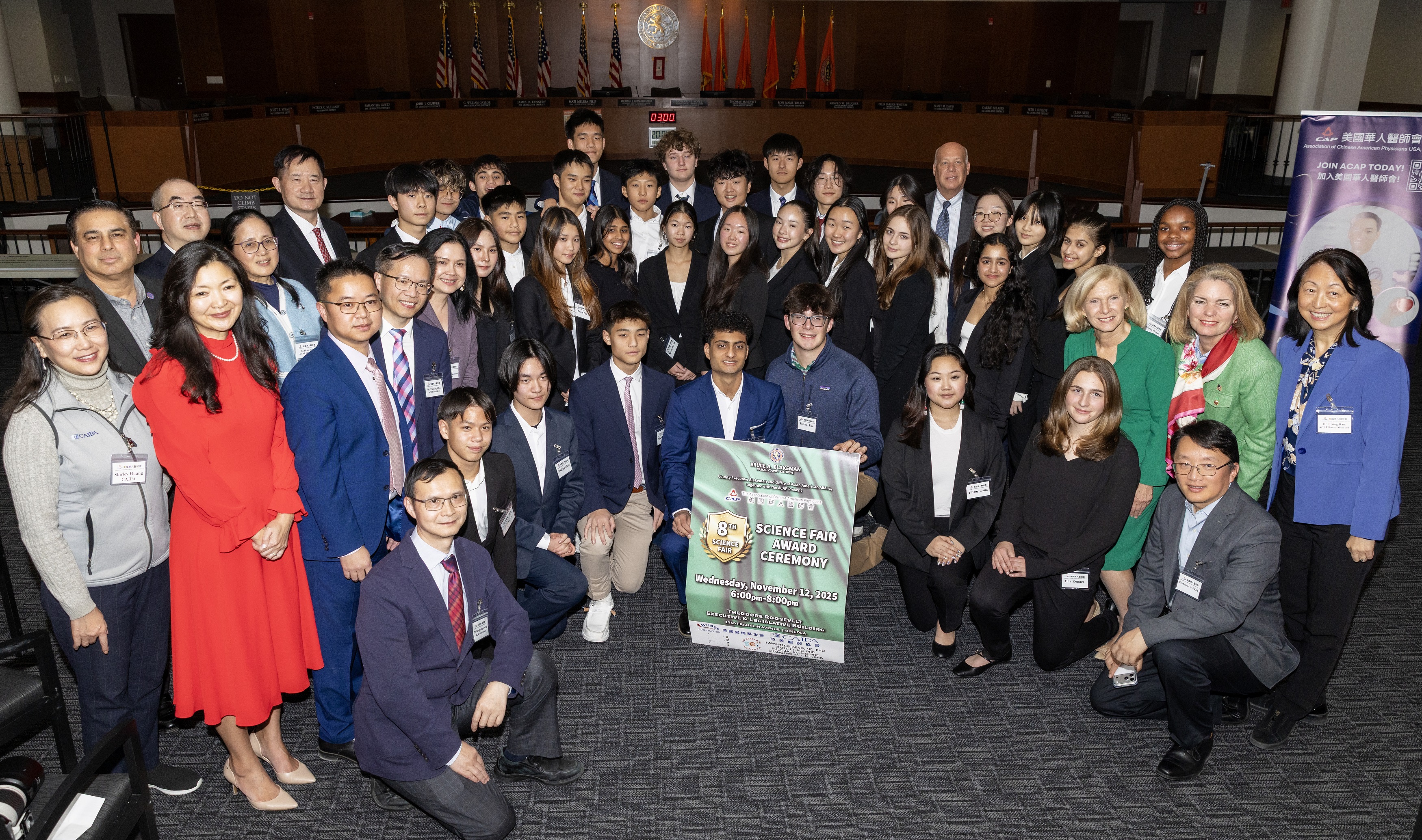 【纽约讯】11月12日晚,美国华人医师会(ACAP)在纽约长岛纳苏郡立法厅成功举办第八届青少年科学竞赛颁奖典礼。本次活动旨在表彰在生物医学及相关领域展现出卓越科研潜力的初高中学生,获得了当地政界、社区及教育界的广泛关注与大力支持。