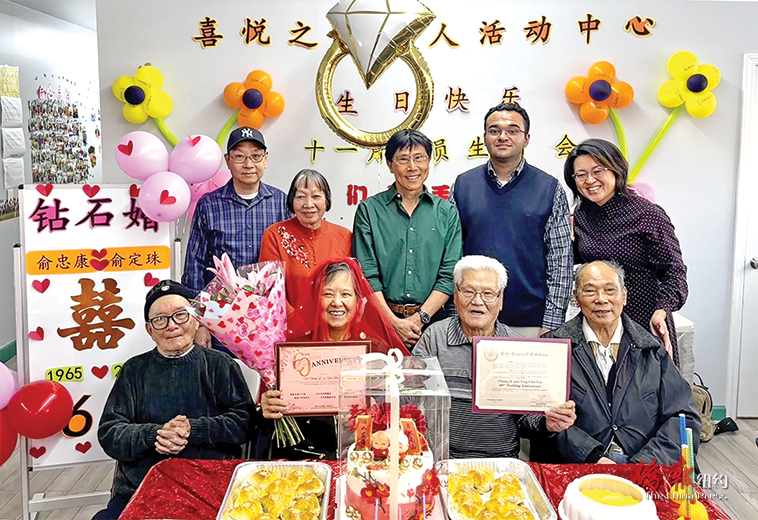 【侨报记者崔国萁11月17日纽约报道】华人健康协会携手史坦顿岛喜悦之家老人活动中心于17日举行庆祝活动,为7位耆老祝寿,同时也为迎来钻石婚的一对老寿星夫妻庆祝结婚60周年,可谓喜上加喜,现场气氛热烈。