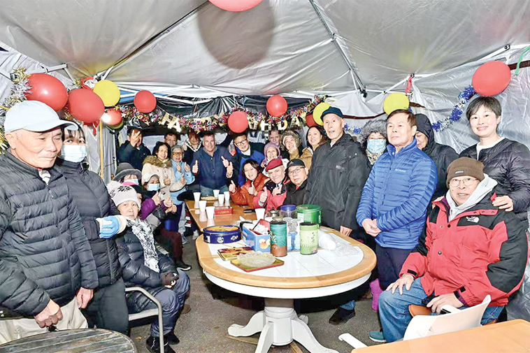 斯利瓦17日晚前来羊头湾科伊尔街2134号反游民所现场探望大家。(民众提供)