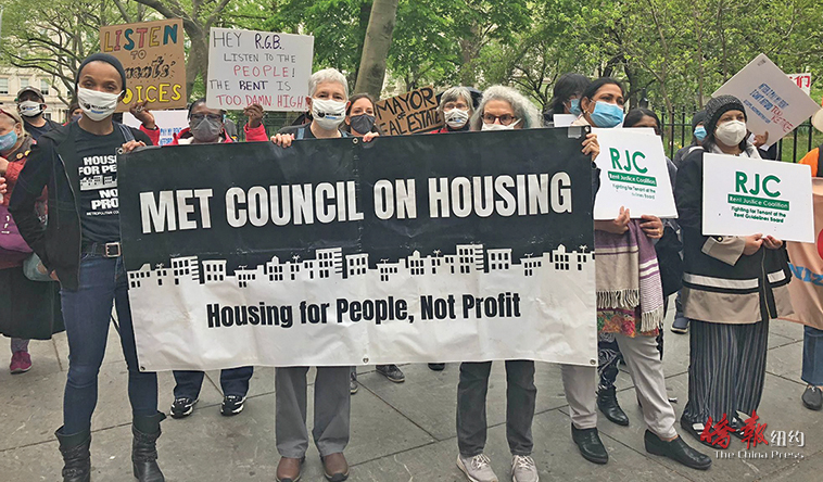租金公正联盟的成员举行抗议活动。(Met Council On Housing)