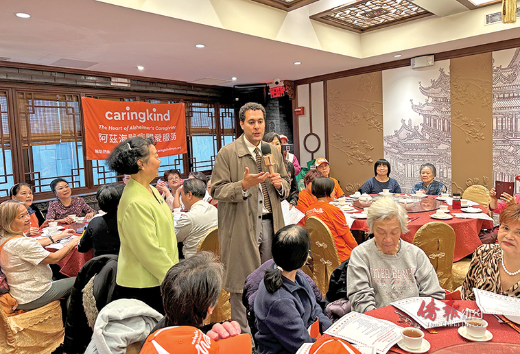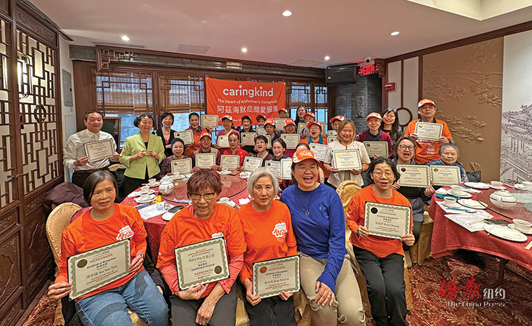 【侨报记者韩清湲11月25日纽约报道】时值阿兹海默症倡导月与感恩节到来之际,阿兹海默症关爱服务(CaringKind)25日(周二)于华埠麒麟金阁海鲜大酒楼举行健脑日义工表彰和答谢茶会,表彰35位义工并颁发褒奖状,市议员马泰(Christopher Marte)出席致辞。