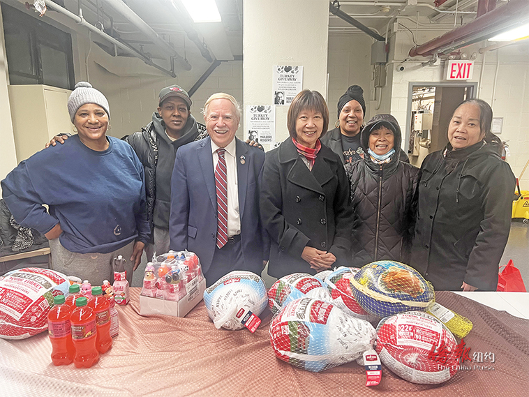 【侨报记者崔国萁11月27日纽约报道】感恩节前夕,州众议员寇顿向选区内的各家老人中心和社区机构免费派发火鸡,总共在12个不同的地点发放了200只火鸡。