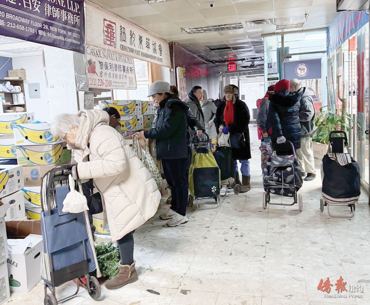 【侨报纽约讯】 为协助居民补充营养,纽约东华协会12日再度为华埠居民派发新鲜蔬菜水果。