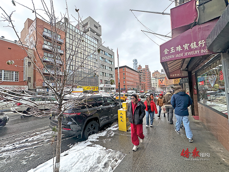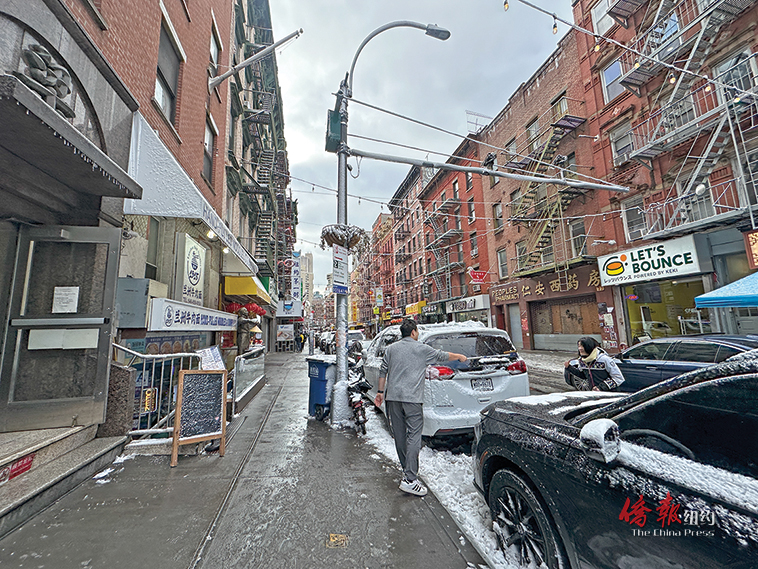【侨报记者韩清湲12月14日纽约报道】纽约14日(周日)降雪导致道路湿滑,航班大面积延误。当日华埠游客虽有减少,但商家仍坚持营业。