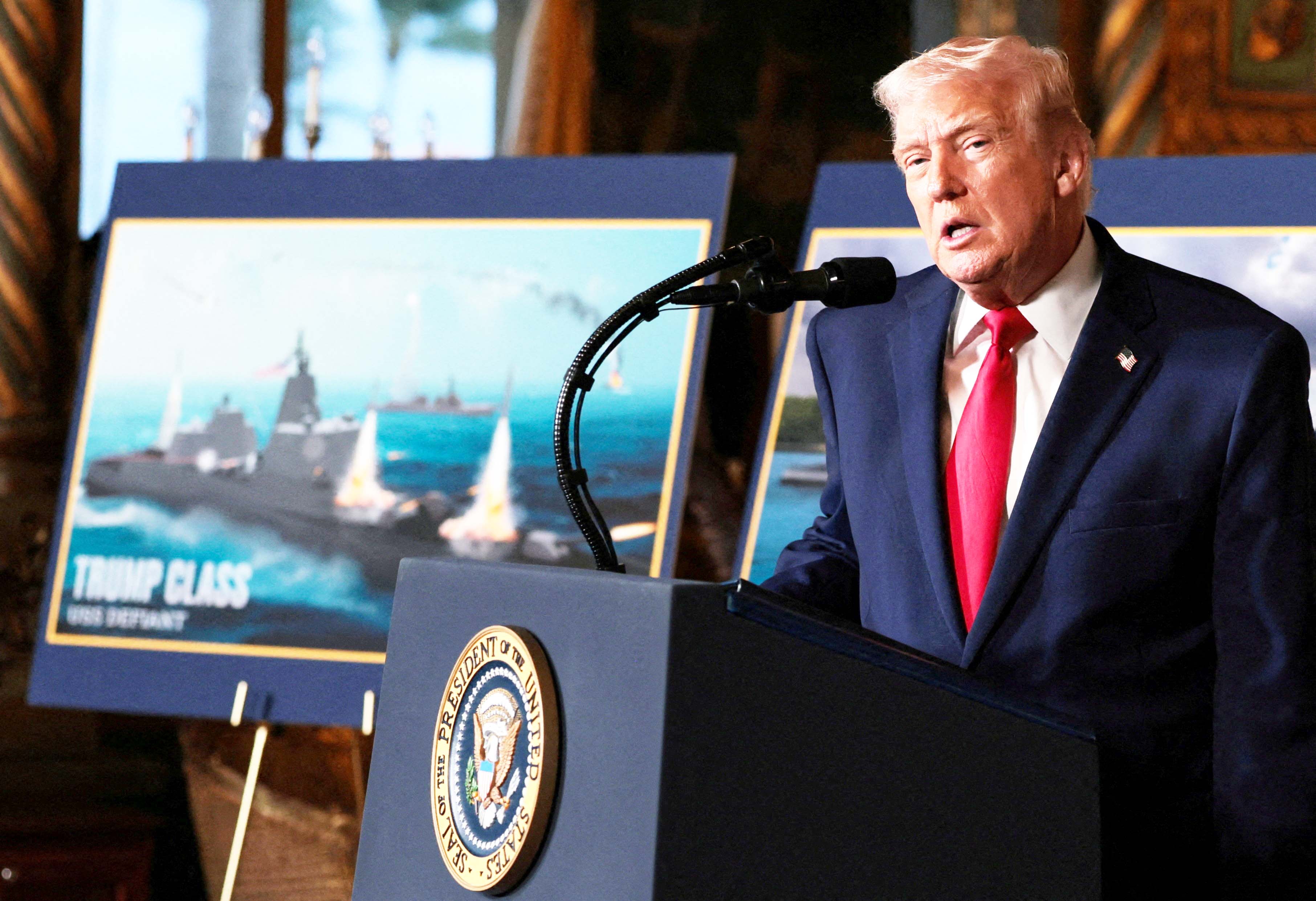 特朗普称,这一级别战舰将排水量超过3万吨,体量大于现役驱逐舰,并配备人工智能系统和定向能武器等最新技术。他还表示,将亲自参与舰艇外观和设计细节,重塑美国海军舰艇形象。