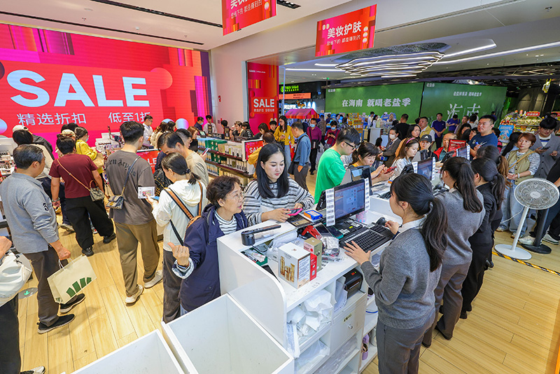 ▲1月1日,元旦假期首日,cdf海口国际免税城迎来购物热潮,众多游客前来选购心仪商品。中新社