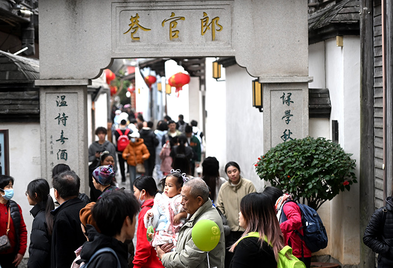 ▲1月1日,游客在福州三坊七巷游览。元旦假期,福州三坊七巷街区举行“民俗雅集·非遗流芳”等活动,吸引不少游客前去参观。中新社