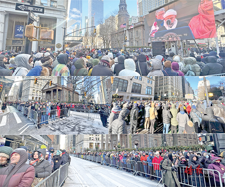 来自纽约乃至全美各地的民众前来纽约参加曼达尼的就职“街区派对”,但很多人对于这一与期望大相径庭的“派对”感到失望。(均韩清湲摄)