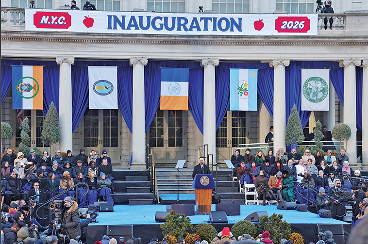 【侨报记者管黎明、韩清湲1月1日纽约报道】侨报记者管黎明、韩清湲报道以民主社会党人身份赢得选举的曼达尼1日下午在市政厅前举行盛大的就职庆典,与主计长李文、公益维护人威廉姆斯一起宣誓就职。曼达尼在典礼上强调,他不会在先前的承诺上打折扣,要纽约人降低期待,恰恰相反,他要以“民主社会党人”的身份勇往直前,充分运用政府的权力来改善纽约人的生活。数万人在场内和场外观看了庆典。但在外面参加“街区派对(Block party)”的众多人士对只能在严寒中观看直播感到失望。