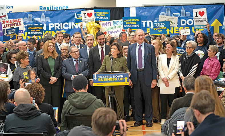 霍楚和曼达尼以及各界人士举办拥堵收费一周年庆祝发布会。(州长办公室提供)