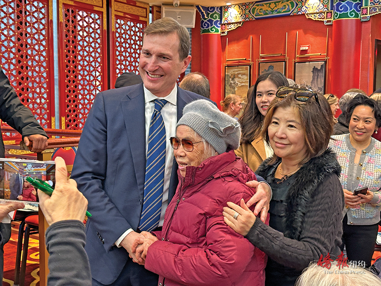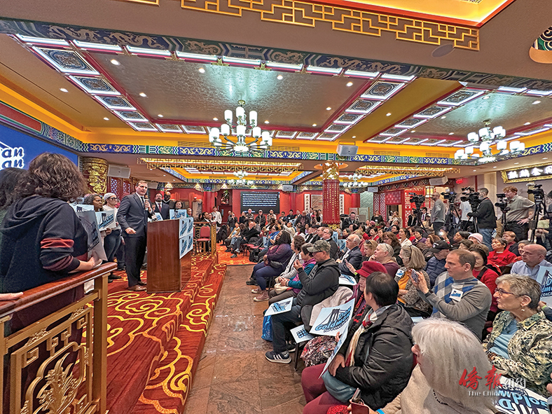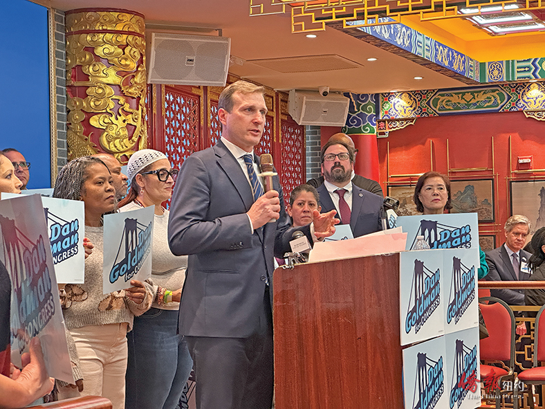 【侨报记者韩清湲1月6日纽约报道】国会议员高德曼(Dan Goldman)6日(周二)于华埠麒麟金阁举行发布会,正式宣布竞选连任,强调将继续制衡总统特朗普以捍卫民主制度,并将通过多项措施以实现提升生活可负担性、保障移民权益、推进全民儿童保育、全民医保以及反对腐败等目标。同日国会众议院民主党领袖杰弗里(Hakeem Jeffries)与州长霍楚等多位民主党民选官员宣布背书支持高德曼。