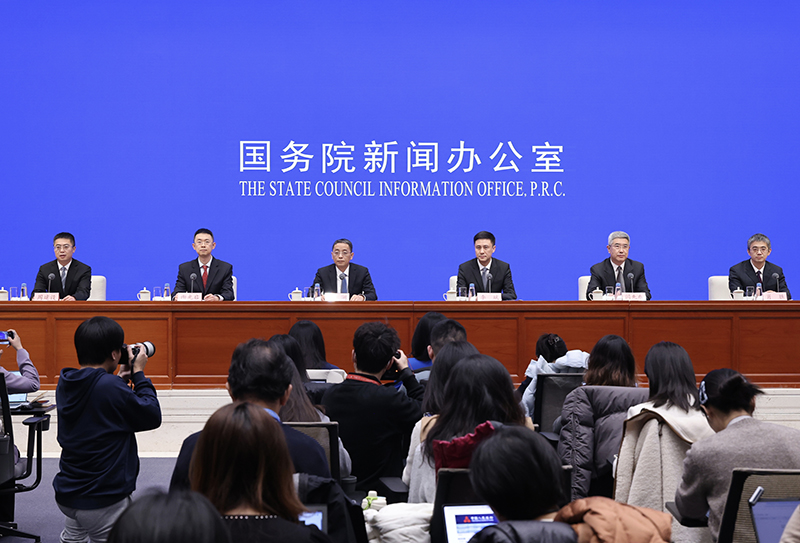 ▲1月15日,中国国务院新闻办公室在北京举行新闻发布会,中国人民银行新闻发言人、副行长邹澜,国家外汇局新闻发言人、副局长李斌,中国人民银行货币政策司司长谢光启,中国人民银行新闻发言人、调查统计司司长闫先东,国家外汇局资本项目管理司司长肖胜介绍货币金融政策支持实体经济高质量发展成效,并答记者问。中新社