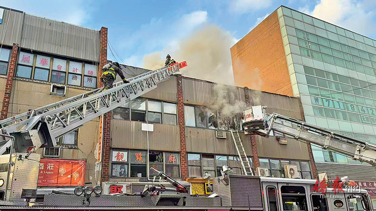 【侨报纽约讯】法拉盛市中心19日(星期一)下午发生火灾,导致一幢三层商业楼宇严重受损,并引发交通混乱,所幸无人伤亡。消防局仍在对起火原因进行调查。