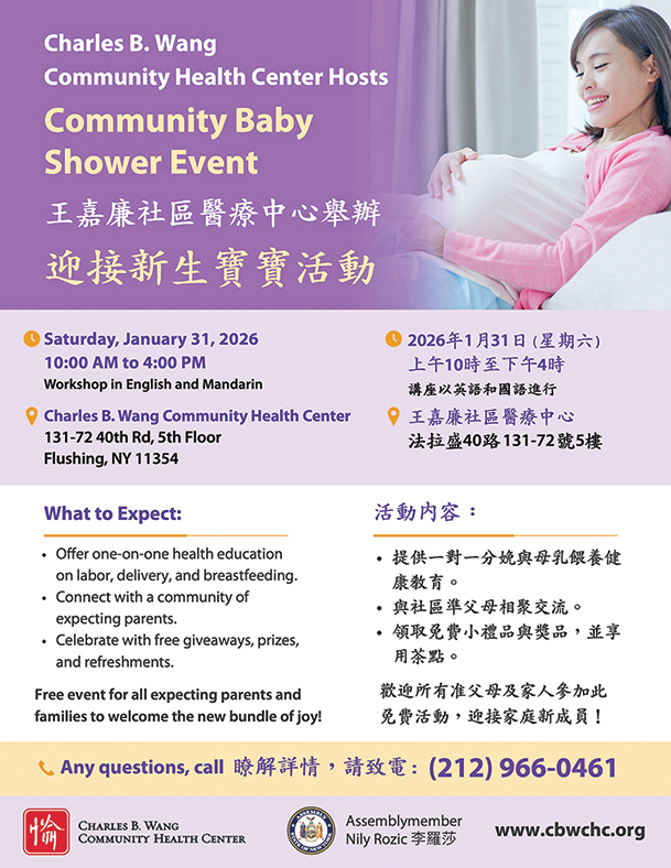 活动免费向公众开放,以英语和国语进行。欢迎民众直接前来,也可致电 (212)966-0461,了解更多详情。