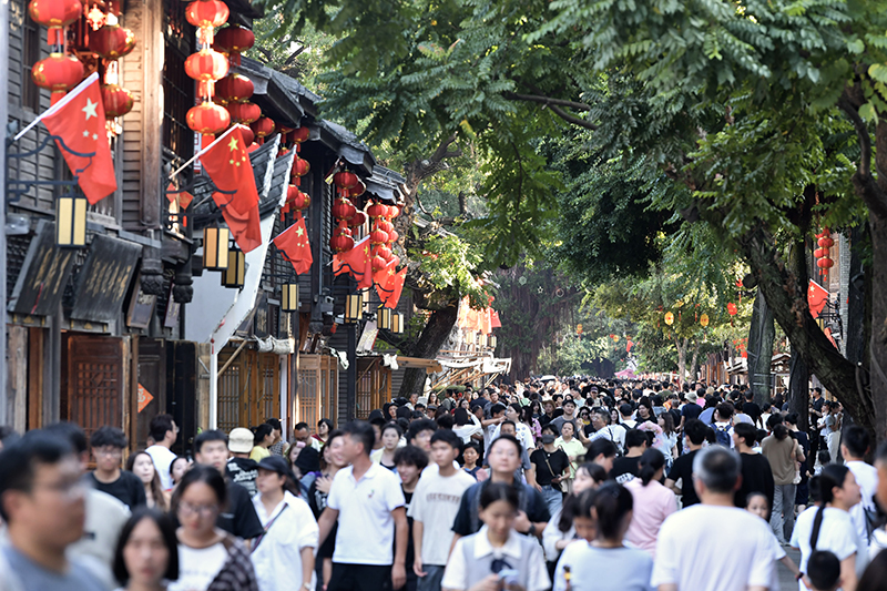 ▲2025年10月7日,福州三坊七巷内游人如织。中新社