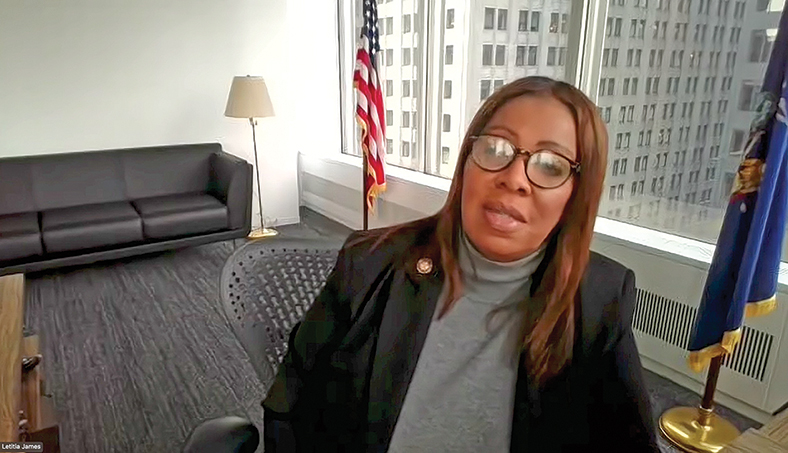 【侨报记者管黎明1月27日纽约报道】纽约州总检察长詹乐霞(Letitia James)27日召开少数族裔社区媒体视频会议,与来自不同社区的媒体代表就诸多议题进行了交流,并重点介绍了检察长办公室在维护移民群体权益、保护消费者,以及打击企业利用算法操纵价格等方面的执法工作。她并就华人社区频发的身份盗窃和与之伴随的银行资金失窃问题进行了回应。