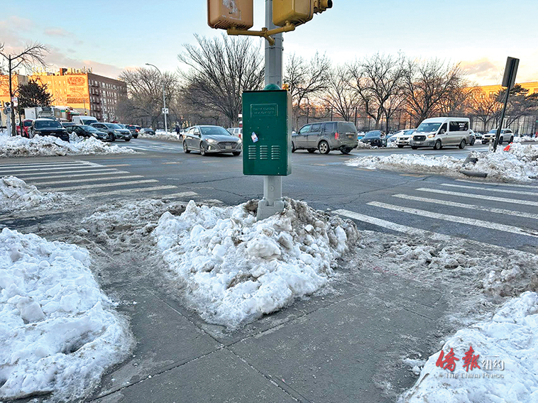 【侨报记者崔国萁1月29日纽约报道】上周日(25日)冬季暴风雪肆虐后,给纽约市留下的大量积雪至29日依然困扰着民众出行。在华人聚居的布碌仑宾臣墟不少十字路口残雪堆积,令民众举步维艰,更对长者出行造成危险。州众议员寇顿办公室接到投诉后,联系了市府相关机构,同时幕僚长贺立宁也发动一些义工清理了多个行人常使用的路口残雪,以便于民众出行。
