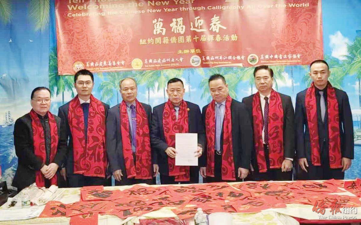 【侨报纽约讯】为弘扬书法艺术,促进文化交流,多个闽籍侨团1日在华埠东百老汇65号举办第十届“万福迎春·共庆新年”免费为民众书写春联活动。活动由美国福建慈善基金会、福州老人会、亭江联合总会以及美国中国书法家协会等社团主办。中国驻纽约总领馆领事向裕韬和荣顶等嘉宾也到场致辞。