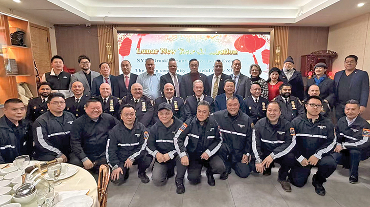 【侨报记者高诗云2月3日纽约报道】布碌仑亚裔民安队3日在八大道皇庭大酒楼举办新春答谢宴,邀请布碌仑南区警署新晋指挥官明奇(Assistant Chief Charles Minch)和多位华人社区警界高官出席,与华社领袖一道感谢警方在过去一年守卫社区治安。