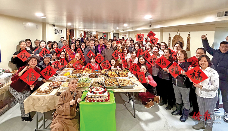 普陀山纽约梵音寺举行了热闹的新春团拜会。(崔国萁摄)